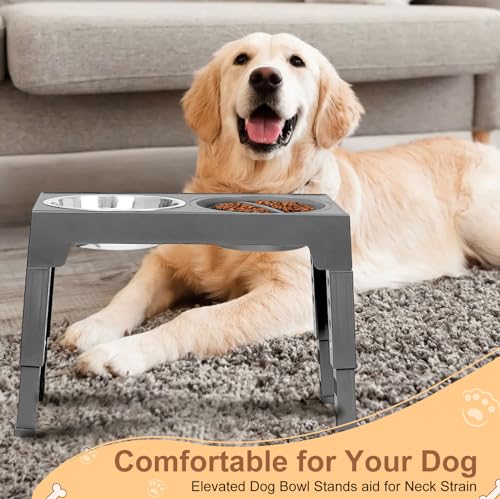 4 regolazione dell'altezza del piedino di supporto: supporto per ciotola per cani regolabile in altezza per cani di tutte le taglie, dì addio al piegarsi. Può essere applicato sia a cani di taglia grande che media. Il design dell'elevazione offre ai cani una posizione di alimentazione più sana. Altezza da piegato: 8 cm (adatto per cuccioli, chihuahua);