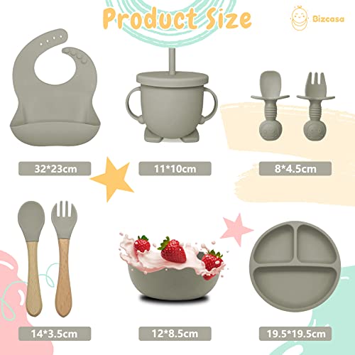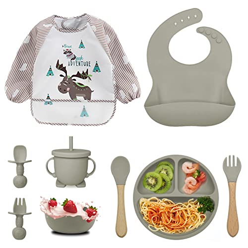 Tivifore Set Pappa per Bambini, Set da 9 Pezzi Svezzamento Set, Silicone Piatto con Ventosa Ciotola Cucchiaio Forchetta Bavaglino, Training Esercitarsi A Mangiare Da Soli, Set Pappa Svezzamento