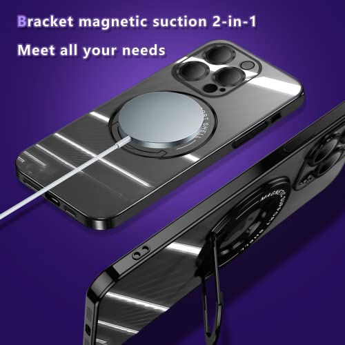 Tiwinxing Compatibile con Cover iPhone 11 Pro Max Trasparente Antiurto con Supporto, Custodia iPhone 11 Pro Max Magnetica Ricarica Wireless con Protezione Fotocamera (Nero)