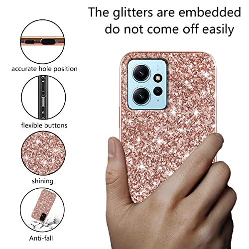 Tiwinxing Compatibile per Cover Redmi Note 12 4G Glitter Brillantini, Custodia Xiaomi Redmi Note 12 4G Antiurto TPU Bumper Case Protettiva (Oro rosa)