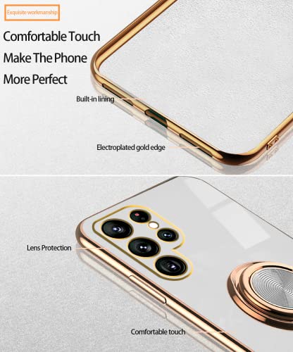 Tiwinxing Compatibile con Cover Samsung S23 Ultra Silicone, con Anello Magnetico a Rotazione a 360 Gradi, Custodia Samsung Galaxy S23 Ultra Cover TPU Antiurto (Bianco)