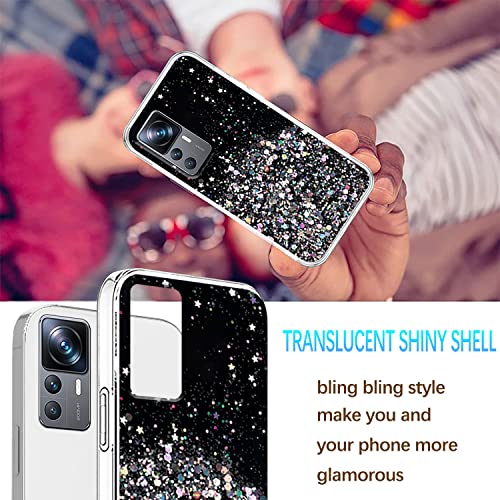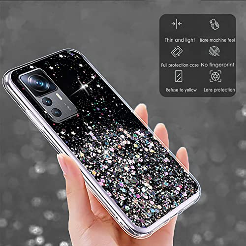 Tiwinxing Compatibile con Xiaomi 12T Pro Glitter Silicone Cover Xiaomi 12T Trasparente Glitter TPU Anti-graffio Custodia Protettiva (Nero)