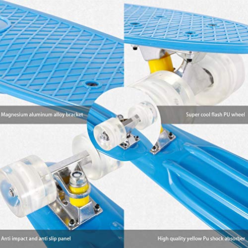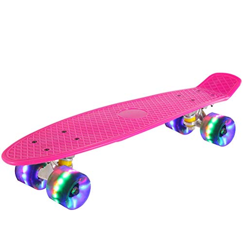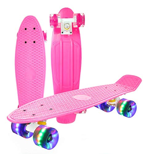 Tixiyu - Skateboard per bambini, con ruote lampeggianti a LED, con cuscinetti ABEC-7, per skateboard all-in-one, mini cruiser retrò, per bambini, ragazze, ragazzi, principianti, adulti
