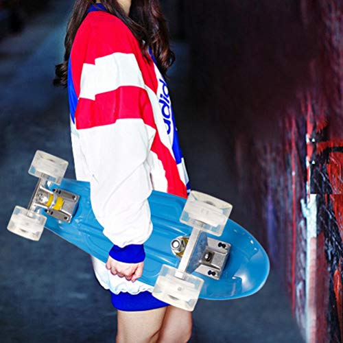 Ruote luminose a LED: dotato di ruote lampeggianti che illuminano i colori vivaci quando si rotola, è perfetto per una crociera fresca con divertimento. Non c'è bisogno di caricare o sostituire le batterie, e si accende sempre mentre si guida. Inoltre, lo skateboard per principianti è dotato di ruote in poliuretano morbido con assorbimento degli urti, perfetto per assorbire tutti gli urti stradali e le crepe del marciapiede tutto dandoti una guida fluida.