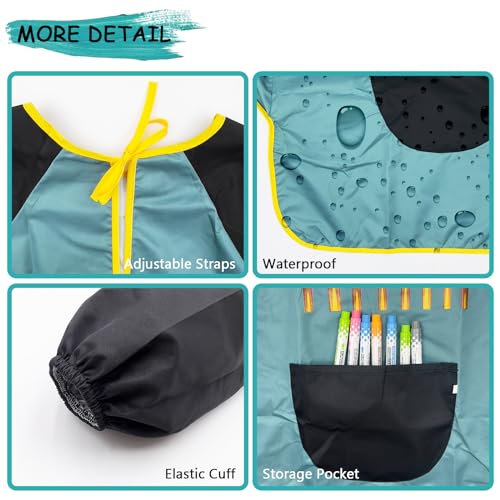 Utile e comodo- questo grembiule per bambini dai 5 ai 12 anni ha maniche lunghe per la protezione e design con chiusura regolabile per un comodo utilizzo. Dotato anche di tasca, che aiuta i bambini a contenere penna ad acqua, vernice, snack, asciugamani di carta e altri oggetti.