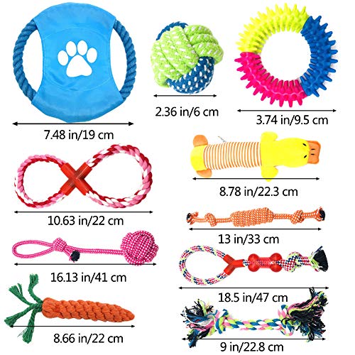 【Perfetto Per Il Cane Medio Piccolo】 Il nostro set di giocattoli 10Pcs ha le dimensioni da grande a piccolo, quindi sono adatti per cuccioli a cani adulti, cani di piccole e medie dimensioni. È un regalo perfetto per i tuoi cani in vacanza o per il compleanno.