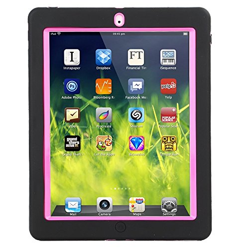 TKOOFN Custodia Stand Supporto per Apple iPad 2/3/4 A1458 A1459 A1460 A1403 A1430 A1416 A1397 A1396 A1395 Cover Protettivo Case + Panno di Pulizia + Stilo Penna + Protettore Schermo - Colore Rosa Nero - PT7704