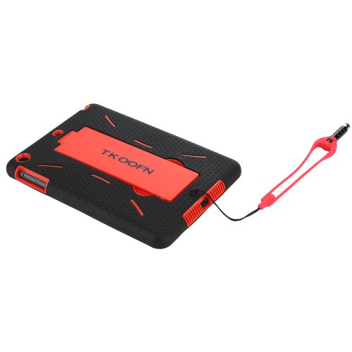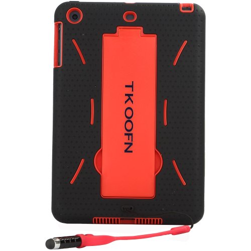 TKOOFN Custodia Stand Supporto per Apple iPad mini (lanciato nel 2012)A1432 A1454 A1455 Cover Protettivo Case + Panno di Pulizia + Stilo Penna + Protettore Schermo -Colore Rosso Nero- PT7603