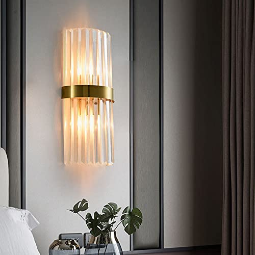 TkTsjtle Applique da parete in cristallo d'ottone Applique da parete in oro per bagno Applique da parete in ferro antiruggine Lampada da parete con paralume in cristallo chiaro Sala da pranzo