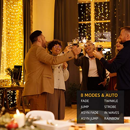 Luci a stringa con 3 modalità di temporizzazione: 300 luci a LED sono dotate di un telecomando intelligente, accendono il timer e otterrai una luce costante di 4/6/8 ore (3 modalità di temporizzazione) che consente di tornare a casa alle luci perfettamente impostate senza dover sollevare il telecomando. Ovunque tu metta una tenda luminosa, sarai accolto da un caldo bagliore e da una presenza accogliente.