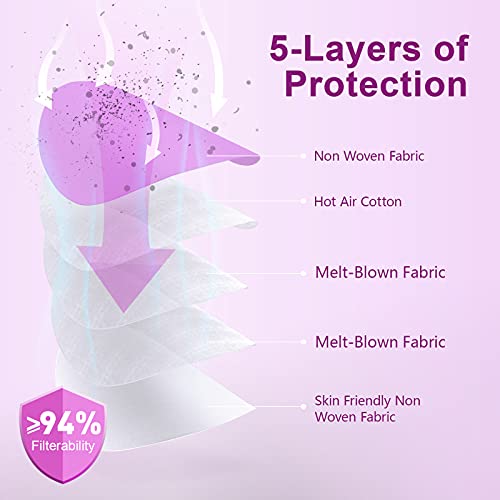 【5 strati di Mascherine FFP2 rosa】 Questa maschera FFP2 è composta da 5 strati che hanno un tasso di filtrazione del 94%. La maschera FFP2 nera a 5 strati offre una protezione maggiore rispetto alle tradizionali maschere usa e getta a 3 strati.