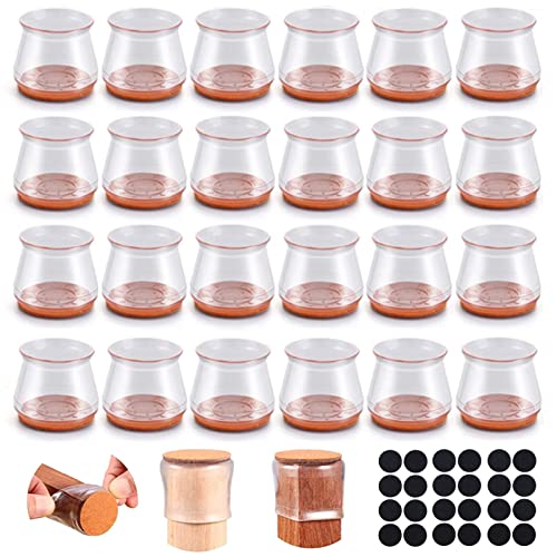 TLOXO 24 Peezi Tappi per Sedie in Gommini,Rotondo Trasparente Silicone Della Sedia Caps,Piedi Rotondi in Silicone per Mobili, Sgabelli, Tavoli, Divani