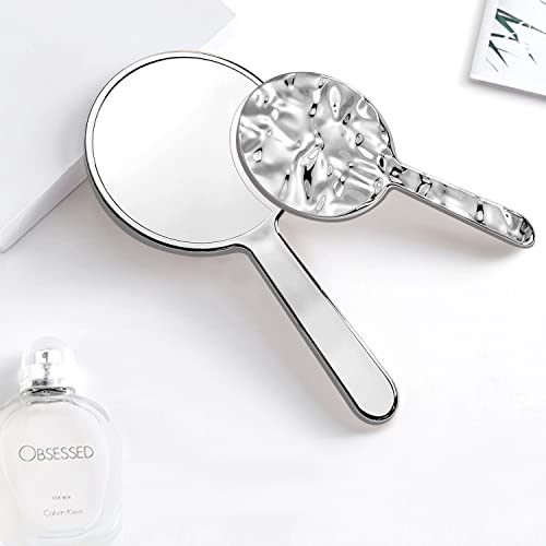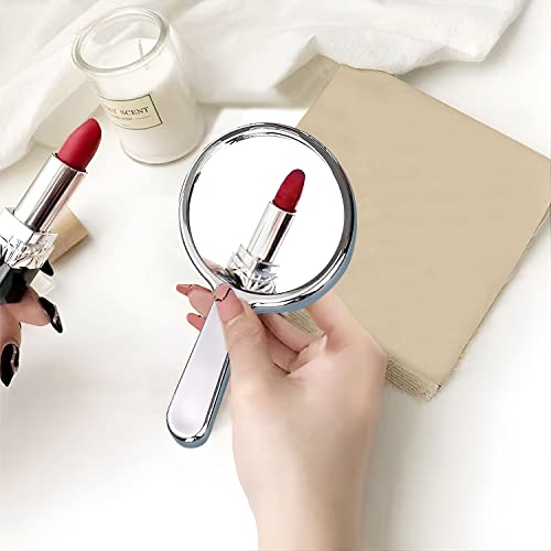 Tlzumt Specchio a Mano Specchio Portatile Specchio con Manico Specchio da Viaggio Specchio Trucco Specchio Multiuso per da Donna, Uomo, Bambini (Rotondo)