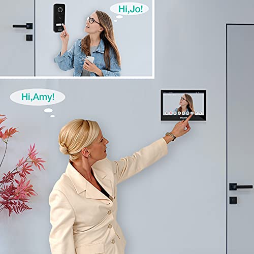 TMEZON 1080P IP wifi 4 fili videocitofono,7 Pollici IP monitor touchscreen,Telecamera Citofoni Esterna Cablata visione notturna,Unlock tramite APP/Carta RFID,connessione wifi TuyaSmart,Monofamiliare