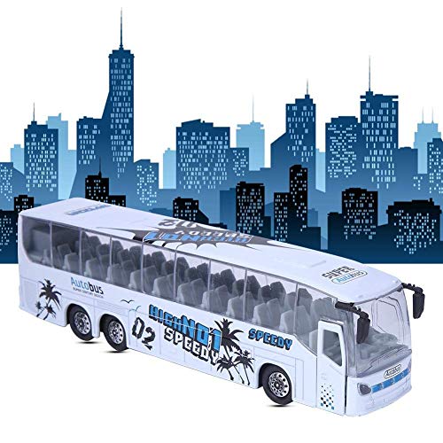 Tnfeeon 1:50 Simulazione Giocattolo per autobus in lega pull-back, Veicoli per autobus in lega pressofusa simulata Modello giocattolo con musica leggera per bambini Bambini Ragazzi Ragazze(bianca)