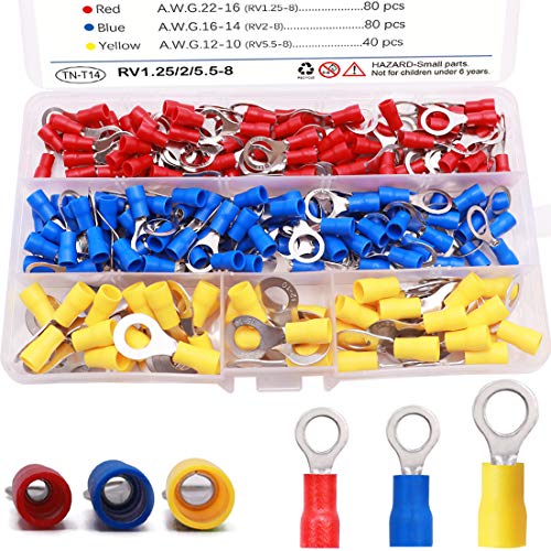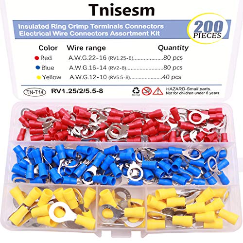 Tnisesm 200pcs M8 Isolato Anello Crimp Terminali Connettori Connettori Disconnessione rapida Filo Elettrico Assortment Kit TN-T14