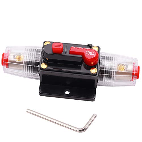Tnisesm /100 Amp Auto Audio Inline Interruttore di alimentazione Reset Fusibile Manuale Reset 12 V-24 V DC con Piccola chiave inglese per Auto Audio System Protezione Z-100A