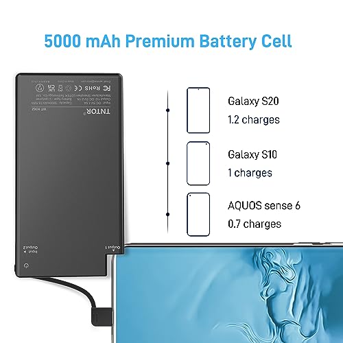 TNTOR 5000 mAh Ultra Slim Power Bank con cavo USB C integrato, [6 mm di spessore] Metal Shell Portable Mini Power Bank per Samsung Galaxy Sony Huawei Xiaomi - Nero