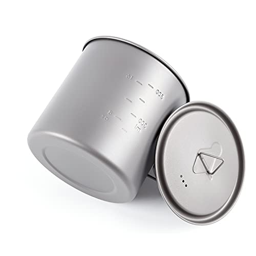 Leggero e durevole: vaso da campeggio in titanio da 650 ml. Peso: 88 g, diametro: 95 mm, altezza: 95 mm, più resistente e robusto rispetto ad altri metalli, mentre più leggero di altri con dimensioni simili.