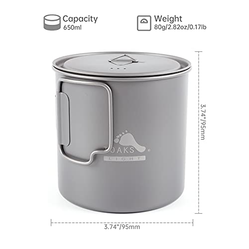 TOAKS 650ml Titanium Pot Backpacking Camping Pot Ultralight Camping Cookware