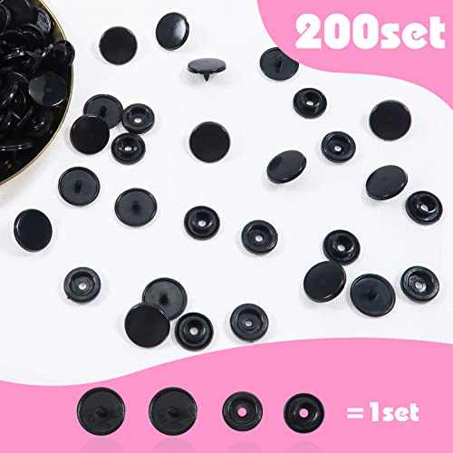 TOAOB - Set di 200 bottoni a pressione T5, in plastica, colore nero, in plastica, senza cuciture, accessori per tessuto, tutti i tipi di abbigliamento fai da te