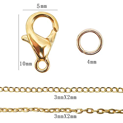 TOAOB 10 Metri Catene in Metallo Collane 50 Pezzi 4 mm Anelli Aperti di Salto e 20 Pezzi 10 x 5 mm Chiusure a Moschetton per Fai da Te Creazione di Gioielli Accessori Oro Tono
