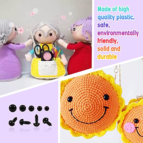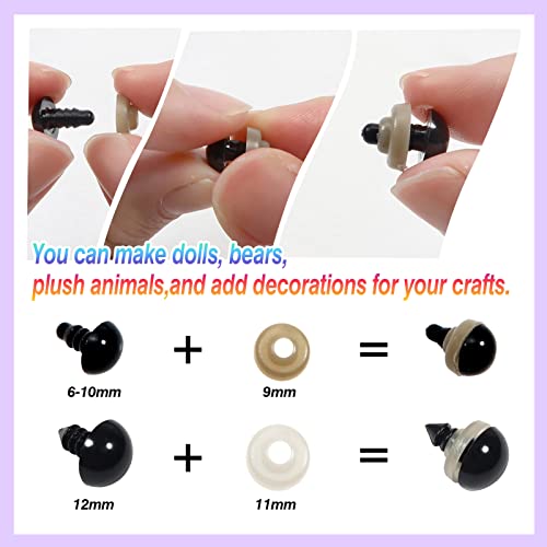 TOAOB 150 Paia Occhi Sicurezza 6mm 8mm 9mm 10mm 12 mm Nero Plastica Occhietti e Rondelle per Creazione Bambole Pupazzi Fai da Te Artigianato