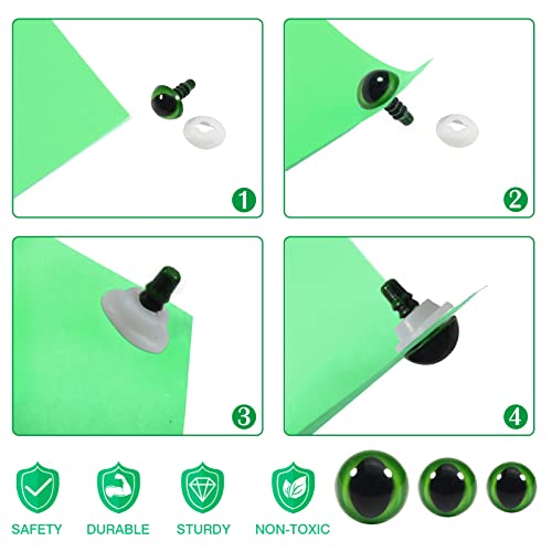 Quantita: contiene 50 pezzi verde di occhi e 50 pezzi di rondelle, le rondelle possono impedire la caduta degli occhi