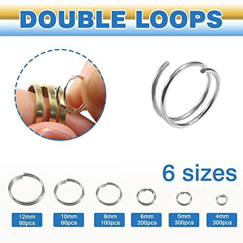 TOAOB 1020 Pezzi Anelli Aperti Doppio Cerchio Argento Anelli Salto di Metallo e Ottone Strumento Aperto Anellini per Portachiavi Gioielli Fai da Te Braccialetti Collane 4mm 5mm 6mm 8mm 10mm 12mm
