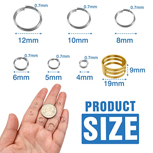 Il pacchetto include: 1020 pezzi rotondo connettori anelli di dimensioni miste in argento, 4mm/5mm/6mm/8mm/10mm/12mm, 1 strumento di apertura dell'anello in rame, comodo per la creazione di gioielli fai-da-te
