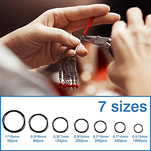 Il pacchetto include: 2300 pezzi di anelli di salto di dimensioni miste in neri, 1 strumento di apertura dell'anello in rame, comodo per la creazione di gioielli fai-da-te