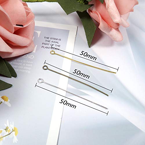 TOAOB 300 pezzi Chiodini Occhiello in Metallo 50mm Colorate Spilli Dritti Pin per Fai da Te Collane Orecchini Bracciale Creazione di Gioielli Oro Argento Tono Bronzo Antico