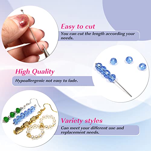 TOAOB 750 Pezzi Chiodini Testa Pins Piatta Occhio Spilli Acciaio Inossidabile Spillo Dritti 20mm a 50mm Pin per Creazione di Gioielli Fai da Te Collane Orecchini Bracciali Oro e Argento Tone