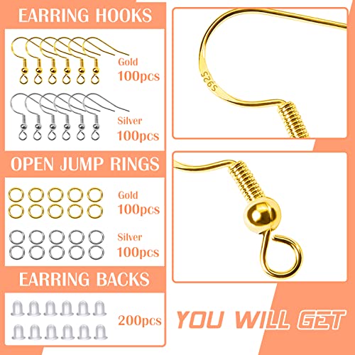 Cosa è incluso: 200 pezzi ganci per orecchini, 200 pezzi ferma orecchini in silicone, 200 pezzi anelli aperti di 6mm, il perfetto set di orecchini fai da te