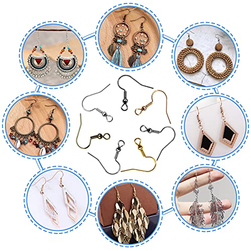 Confezione: 140 orecchini a gancio, oro, argento, bronzo, nero, oro K, bianco K, grigio argento, 7 colori, 20 pezzi per colore, molti colori possono essere utilizzati per diversi stili di orecchini fai-da-te