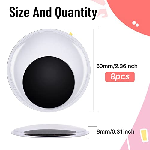 TOAOB 8 Pezzi Occhi Mobili Adesivi Plastica Autoadesivi Wiggle Googly Bianco e Nero Finti Pazzi Occhietti per Scrapbooking Artigianato Fai Da Te Bambole Pupazzi 60 mm