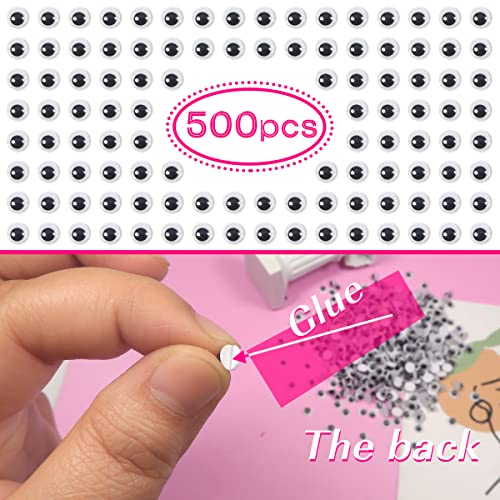 TOAOB 500 Pezzi 5mm Occhi Mobili Adesivi Rotondo Plastica Autoadesivi Wiggle Finti Occhietti per Fai da Te Scrapbooking Artigianato Bambole Pupazzi Accessori Bianco Nero
