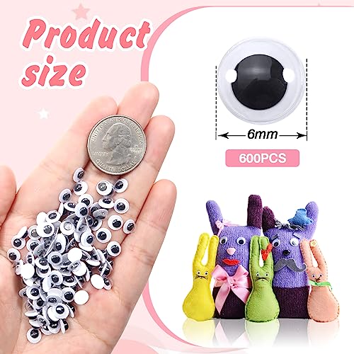 TOAOB 600 pezzi 6mm Occhi Mobili Adesivi Rotondo Plastica Autoadesivi Wiggle Finti Occhietti per Fai Da Te Scrapbooking Artigianato Bambole Pupazzi Accessori Bianco Nero
