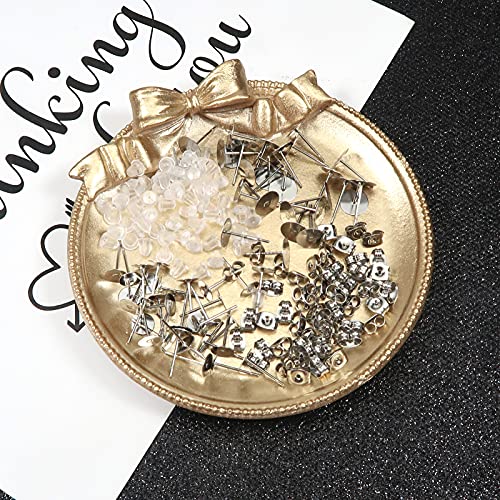 TOAOB 500 pezzi Orecchini Piatto Base in Acciaio Inossidabile 6mm 8mm Chiusure per Orecchini e 5x4 mm Plastica Trasparente Ferma Orecchio Backs Support per Fai Da Te Creazione Gioielli Kit