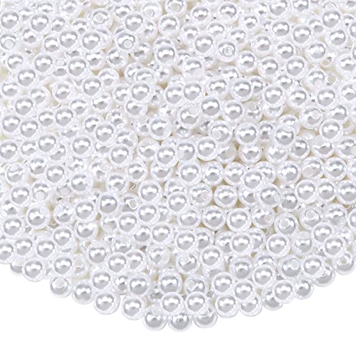 TOAOB 1200 pezzi Perle Bianche Rotonde 4 mm Plastica Perline con Foro per Creazione Gioielli Fai Da Te Bracciali Collane Artigianato Bigiotteria Decorazione