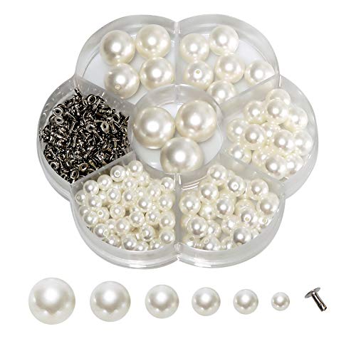 TOAOB 127 Pezzi Perle Plastica Bianco 6mm a 16 mm e 180 Pezzi Rivetti Metallo Bottoni per Decorazione Fai da Te Artigianato Vestiti Borse Scarpe