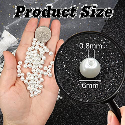 TOAOB 1000 Pezzi Perle Vetro Bianco Rotonde 6 mm Finte Perline per Creazione Gioielli Fai Da Te Bracciali Collane Artigianato Decorazione
