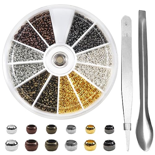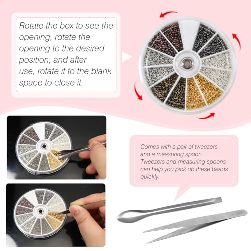 La confezione include: 2400 perline distanziatrici, 1 pezzi pinzette e 1 pezzi spatola. 6 colori: oro, argento, nero, bronzo antico, rosso antico, bianco K, ciascuno con 400 pezzi, per soddisfare le vostre diverse esigenze fai da te