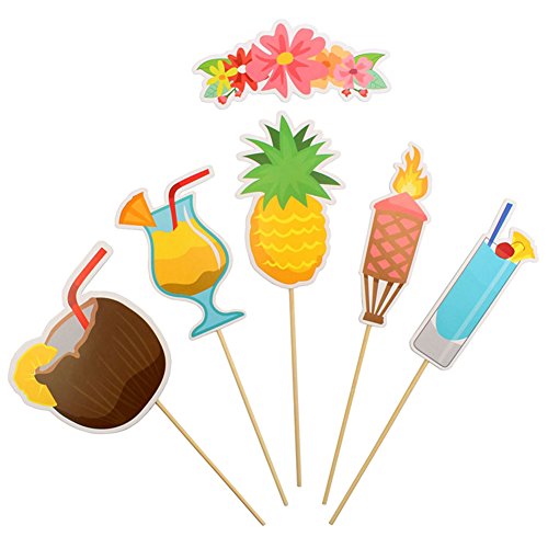 Pacchetto: 21 pezzi di puntelli di stand diverse foto fai da te, inclusi bicchieri, ananas, fenicotteri, bevande fredde, occhiali da sole e altri articoli estivi, bastone di bambù, colla a punti