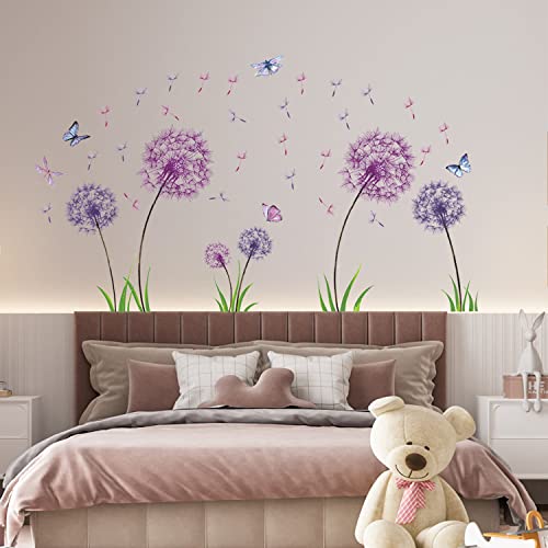 Grande decorazione da parete con dente di leone e farfalla: i nostri adesivi da parete contengono fiori di dente di leone viola e fucsia. Possono essere incollati in modo flessibile per creare una scena in cui i petali si pesano nel vento. Puoi dare libero sfogo alla tua creatività e creare una stanza calda ed elegante.