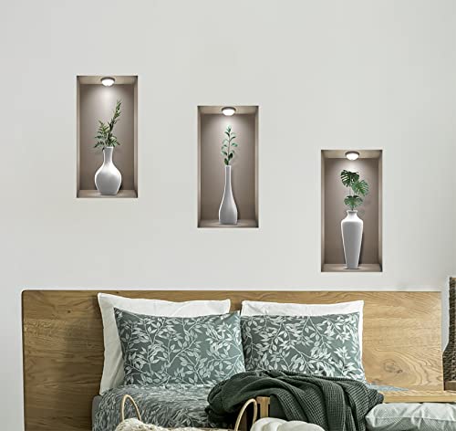 TOARTI 3 Pezzi 3D Poster Vaso,3D Adesivi da Parete Pianta,Moderno Adesivi Murali per Camera da Letto,Rimovibili Piante Vasi Sticker Decalcomanie per Soggiorno Ufficio Studio Decorazioni,20 * 40CM