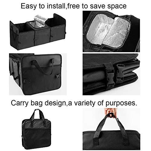 Facile da installare e utilizzare i giorni di una caotica auto sono oltre. Apri la organizer, piatti di scivolare nella base rinforzata, attacca il divisorio in velcro e riempire con qualsiasi articolo che desideri.Grazie alla sua costruzione superiore, così facile da comprimere e riporre nel bagagliaio quando non necessario.