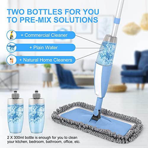 Tobeelec Mocio Lavapavimenti a Spruzzo, Spray Mop con 2 Flacone Spray e 4 Panni in Microfibra Riutilizzabili, Lavapavimenti Pavimenti, Spray Mop Ruotabile a 360°, Adatto a Legno, Marmo, Piastrelle