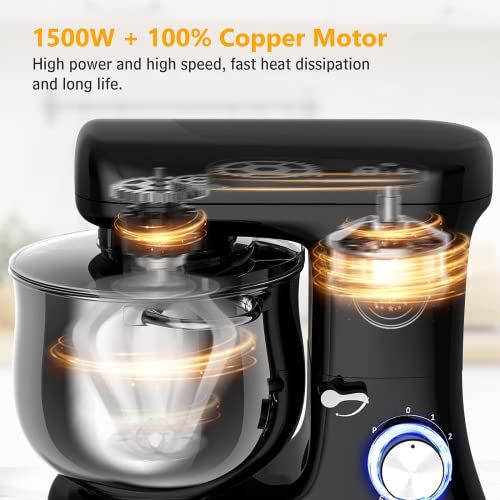 TOBEELEC - Robot da cucina, 8 l, 1500 W, con frusta, gancio per impastare, spazzola, paraspruzzi, velocità 6+P con ciotola in acciaio inox, colore: nero [Classe di efficienza energetica A+++] (8l) (Nero 8L)