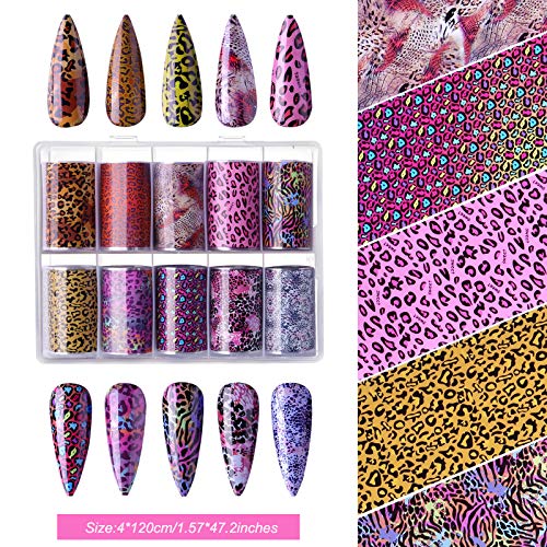 TOBEGLAM 10 PCS Nail Foil Transfer Adesivi Unghie Kit Foil Unghie Leopardato Decalcomanie Fai da Te con 2 x 15ml Gel di Transferimento Decorazioni per Unghie Disegno Stickers Unghie